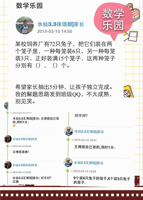 3、数学乐园。利用班级徐颂麒爱好数学,以及家教辅导的资源,出题后有讲解,有参与。有互动。